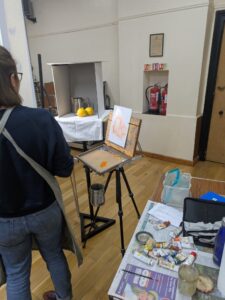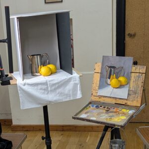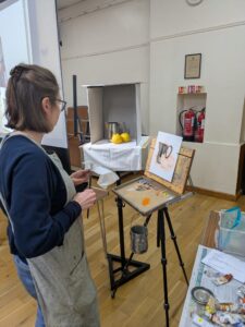 On Tuesday, 17th March, 19.30 – 21.30, artist Catherine McVean gave a live demonstration on painting a still life with silver surfaces.