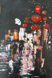 Alice has been creating scultpures and paintings for a number of years and attends a few classes each week, including at WADAC. She uses a variety of mediums, but is happiest creating colourful acrylic scenes. Her subject matter is wide-ranging – from portraits of pets and grandchildren, to cityscapes, land and sea-scapes. What they generally share in common is a bold use of vibrant colour.